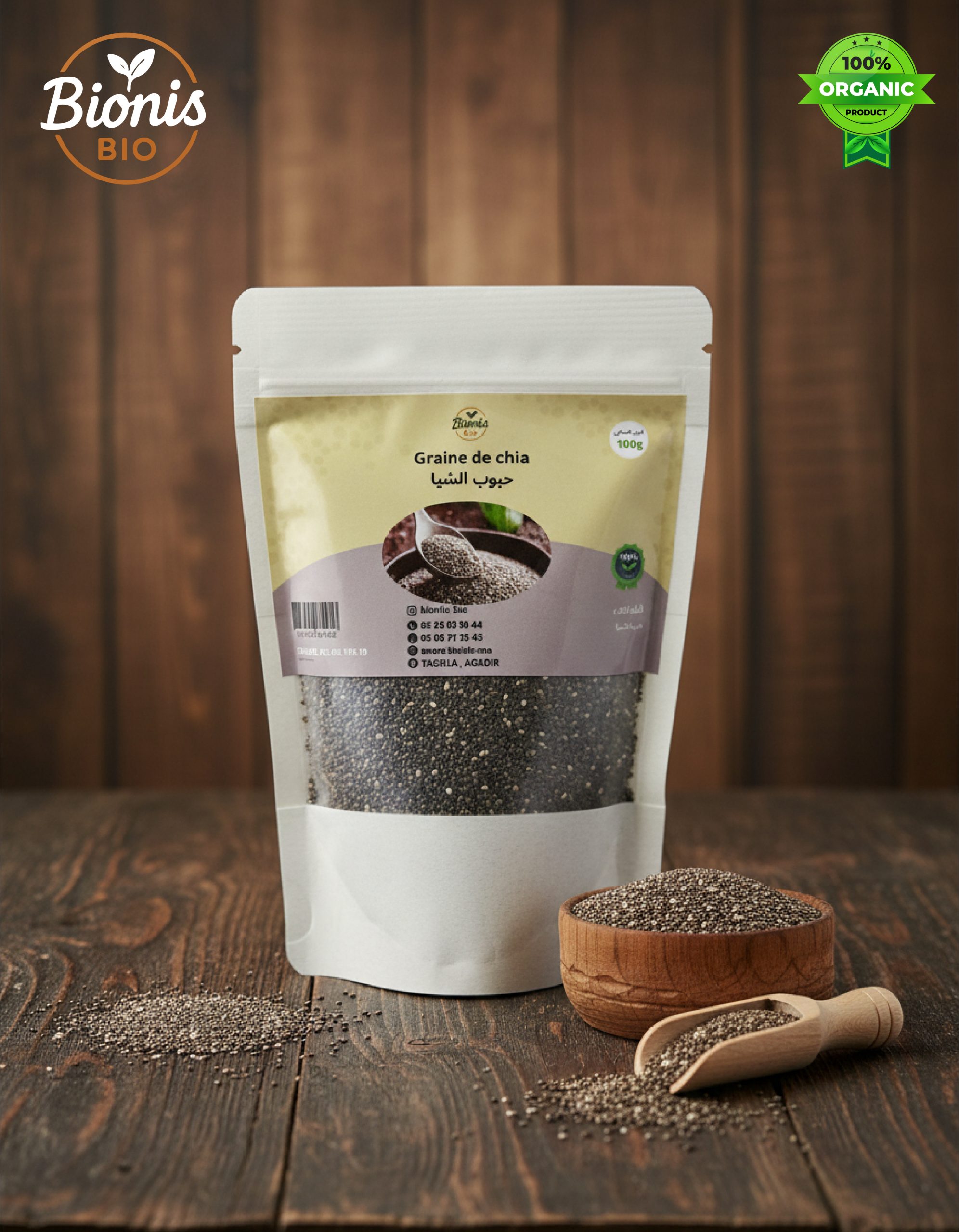 منتوج طبيعي وغني بالأوميغا 3، الألياف، الكالسيوم والبروتين، كيساعد فتنقية الجسم وتقوية المناعة تقدر تضيفها للعصائر، اللبن، الزبادي أو حتى الحلويات. كتعطي إحساس بالشبع وكتنفع بزاف للناس اللي كيتبعو نظام غذائي صحي ومتوازن. بلا مواد حافظة ولا ملونات صناعية
